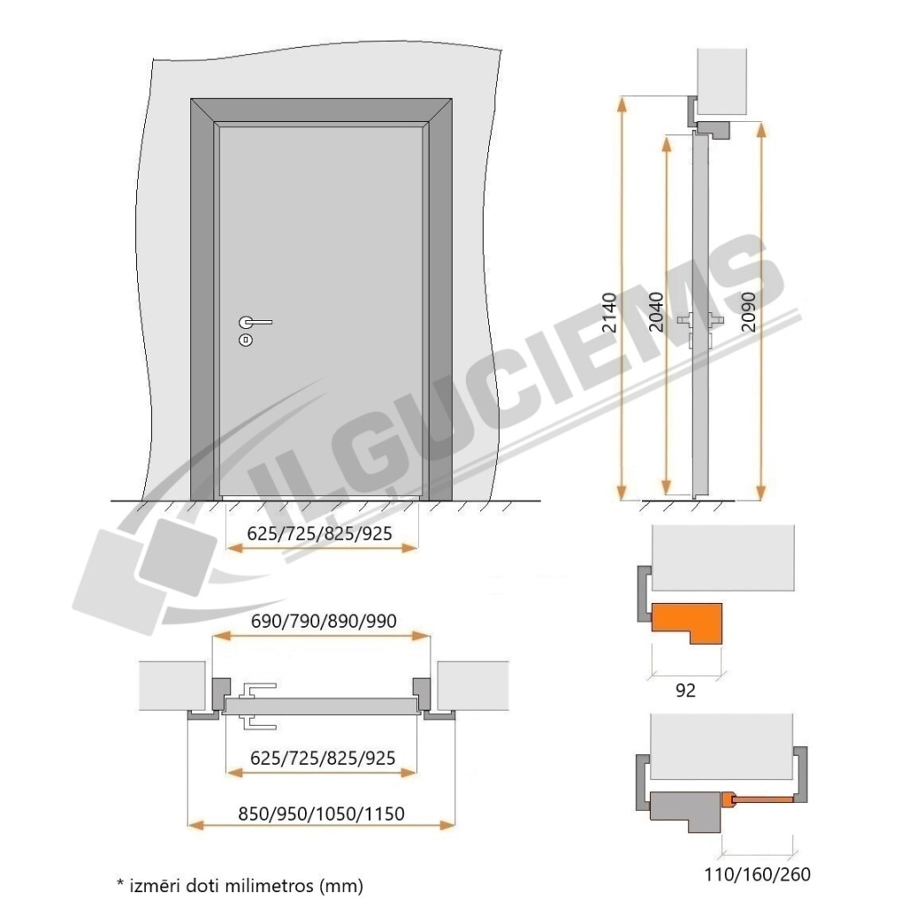 To meet the sound insulation requirements, a threshold with a step and a frame without a sealing rubber are also required.